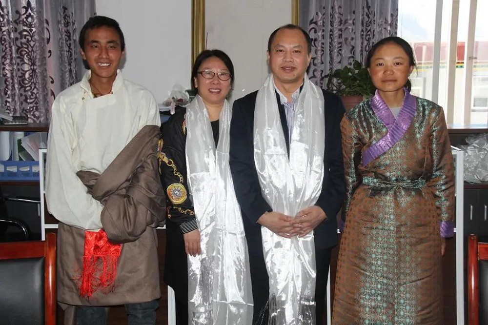 接受西藏大學(xué)生獻(xiàn)哈達(dá)